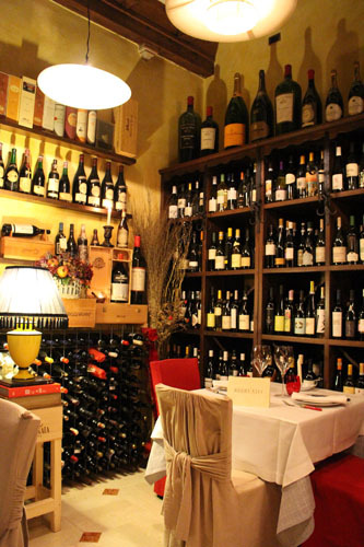 奥の、 それこそワインセラーか?? と思えるような 天井までワインが積まれた小さな部屋のテーブルに案内されました。