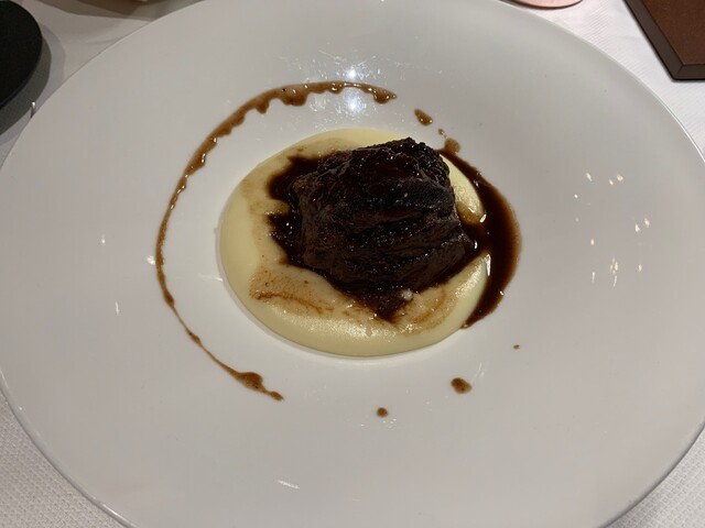 牛肉のほほ肉をアマローネで煮込み、周りにはマッシュポテトが添えてある。
