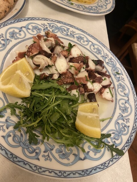 お願いしたのはマルゲリータ、海老とイカのグリルとヴィーノロッソ。