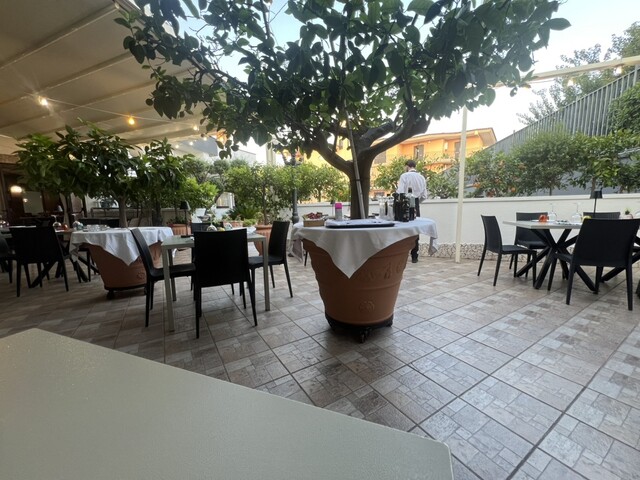 ナポリ郊外ジュイアーノのエリアに佇むホテルに併設されたリストランテ。宿泊はしておらず、電話予約してディナーに4人で訪問。