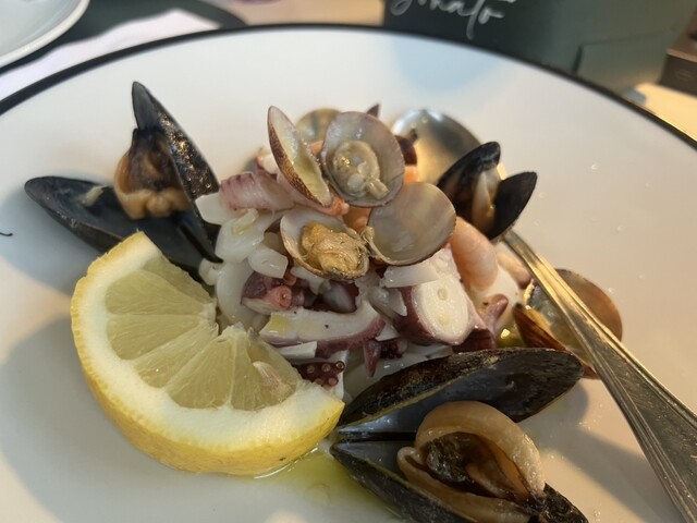 ナポリ郊外ジュイアーノのエリアに佇むホテルに併設されたリストランテ。宿泊はしておらず、電話予約してディナーに4人で訪問。