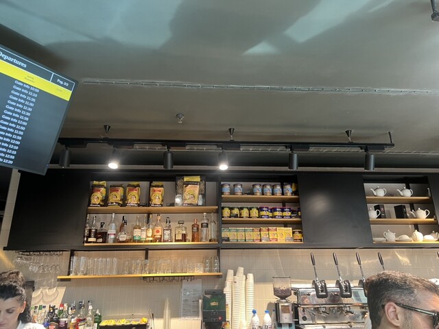 イタリアのローマフィウミチーノ空港内にあるカフェ。ナポリからの乗り換えで乗り換え時間はさほど多くなかったが、お腹が空きすぎてすぐに食べられる物を探して訪問。