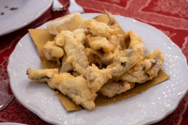 近くがメルカートなので、ランチ前は、ガルガーノのオレンジやチーズ等、お買い物が楽しめます。