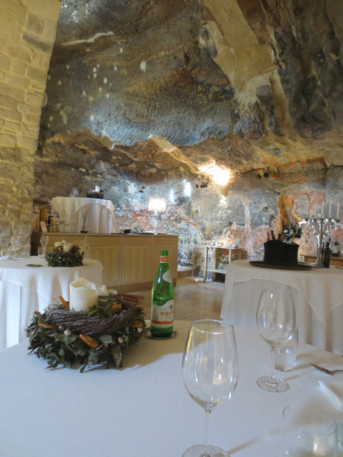 リストランテの中は、天然の岩肌を活用したとても素敵な雰囲気です。お店の人たちも、ラグーザとは思えないような上品な感じでした。
