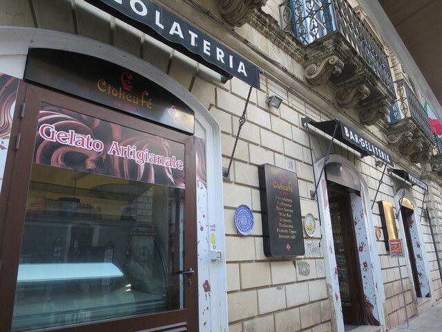 町の名物のモディカチョコレートも売っていますが、よそで作られたパッケージされた完成品を売っているだけなので、ここでは他のシチリア銘菓のカンノーリなどを食べたほうがお得感があります。