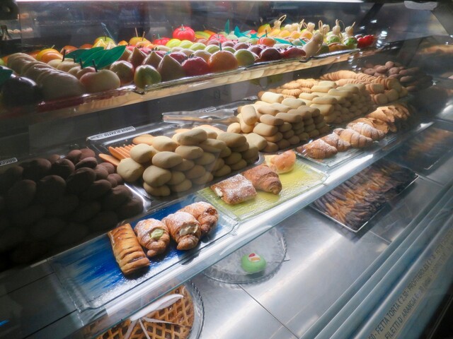 町の名物のモディカチョコレートも売っていますが、よそで作られたパッケージされた完成品を売っているだけなので、ここでは他のシチリア銘菓のカンノーリなど...