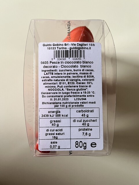 写真は、トリノのGuido Gobinoで買った "Pesce d' Aprile 、四月の魚" のチョコレートです。
