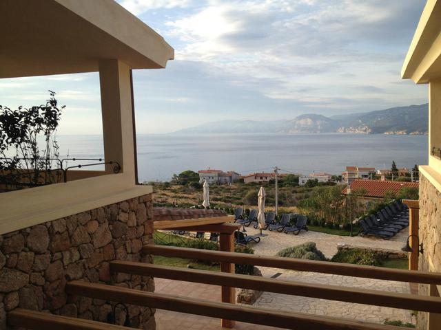 イタリア、サルディーニャ島の東の中間地点に位置する場所にあるカーラ・ゴノネという街の高台にある海が見えるカフェです。