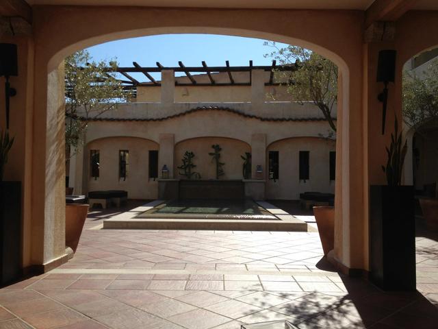 ホテルの入り口の横の高台のテラス席に案内されます。