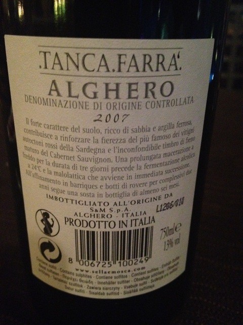 夜、サルディーニャワイン