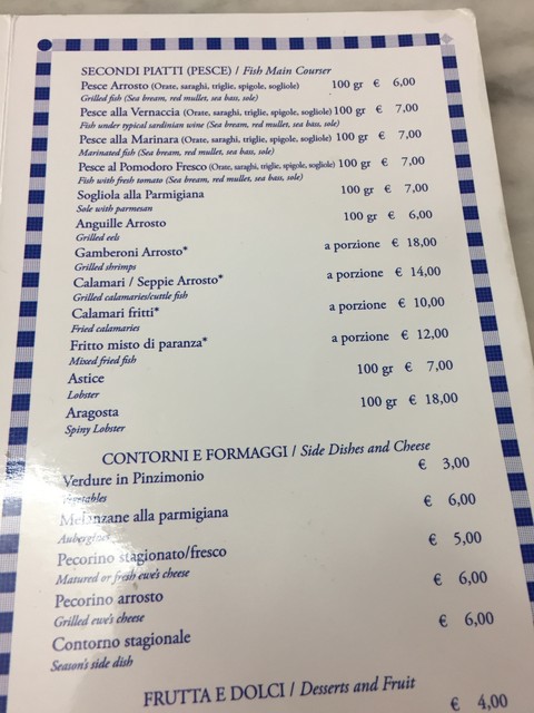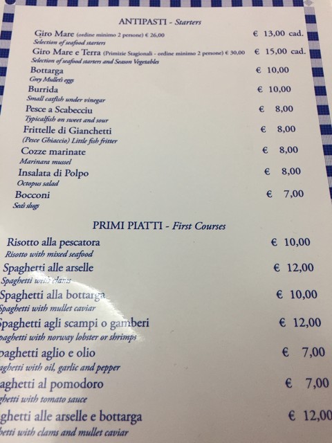 不思議なのはspaghetti alle arselleが12ユーロなことです。つまりボッタルガはただなのか(笑)。