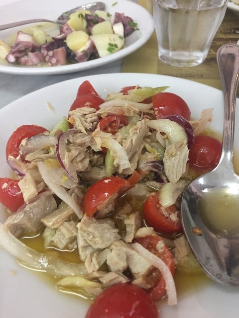 なので4〜5人のグループで行って、前半戦をうまく乗り切って(目が欲しがる状況を我慢して)後半戦のメインにお腹を残しておけば、ドーンとスズキやチヌのトマト煮込みやバケツいっぱいのコッツェなんかを食べることができます。