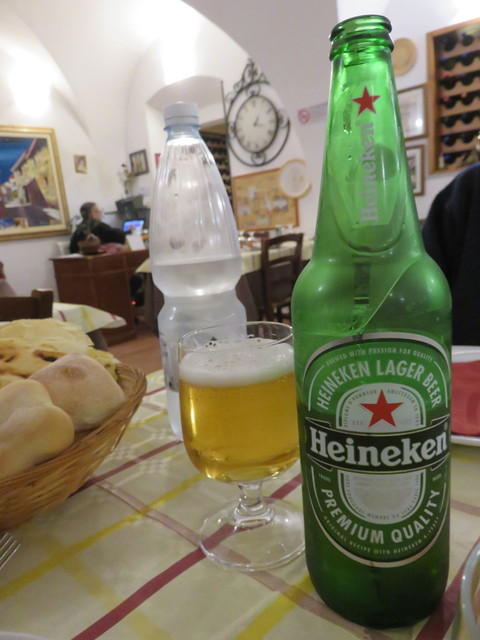 頂いたのは馬肉のステーキ12ユーロ。臭さはほとんどありません。ニンニクがかなり効いてますが、塩味がほとんどないので自分で塩を振りました。肉の旨さは良いです。