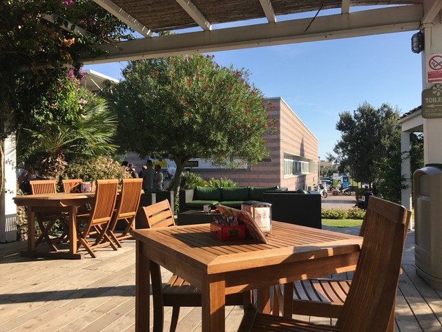 伊サルディーニャ島の空港のオープンテラスのカフェ