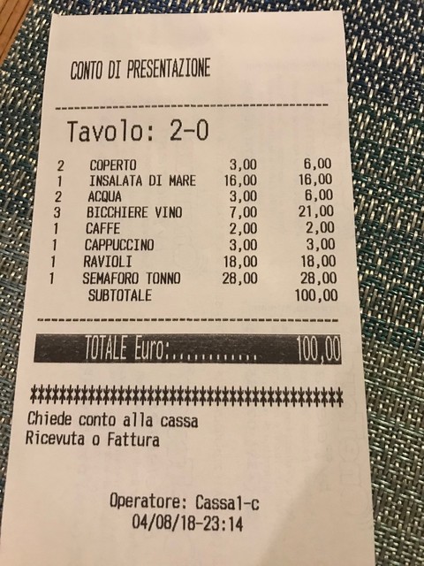 これで2人で100ユーロ!サルディーニャ島はリーズナブルで美味しいお店がたくさんあります。