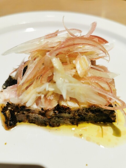 鰆の皮目を炭火でパリッと焼きあげています。