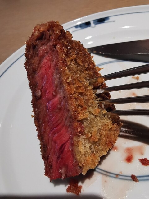 衣はサクッと軽やかで肉はレア気味のちょうどいい塩梅の柔らかさです。