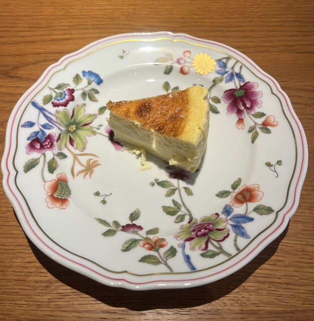 自家製バスクチーズケーキ。焦げ目があまり無いタイプのオリジナル。シンプルですが、お皿がかわいいから大満足!