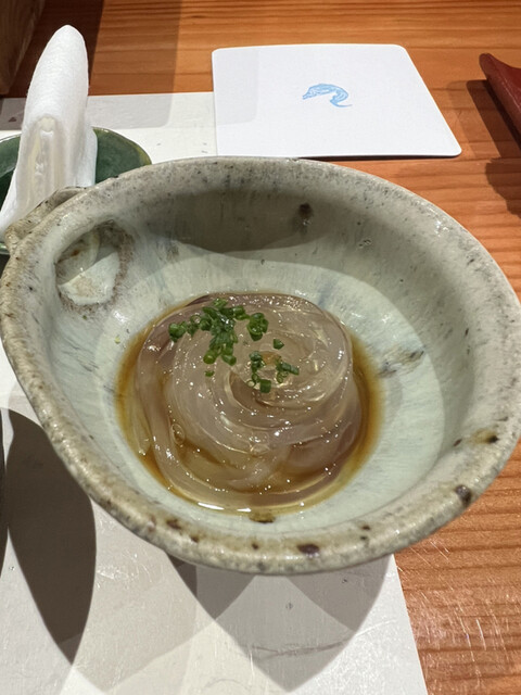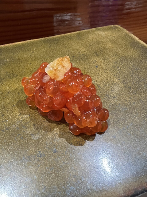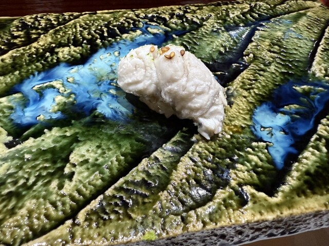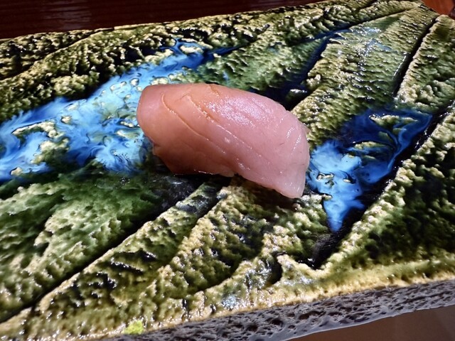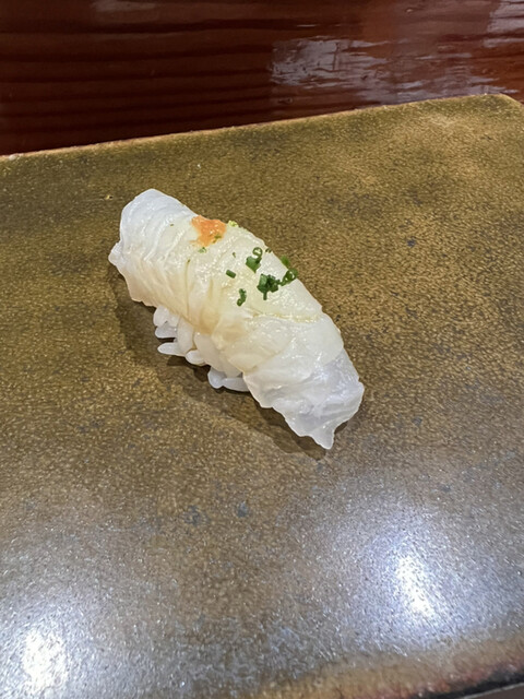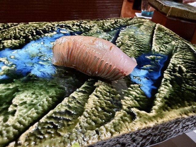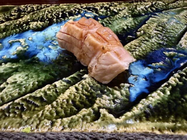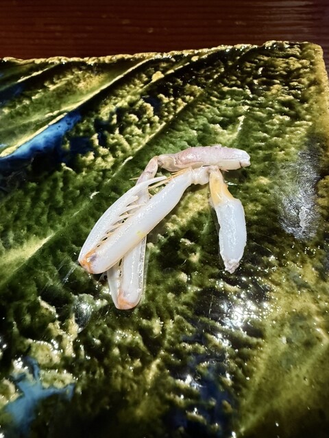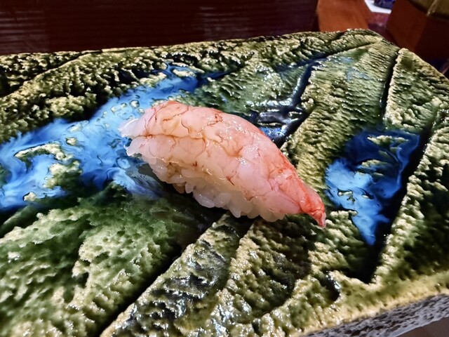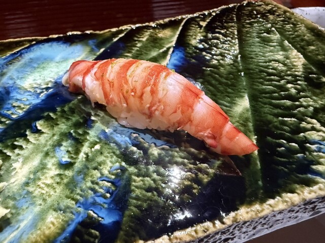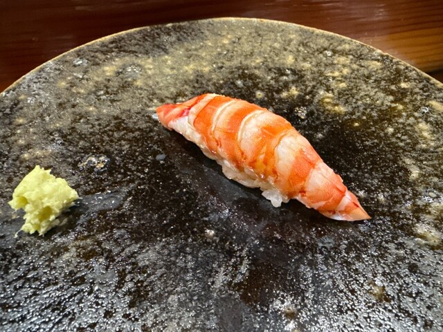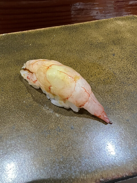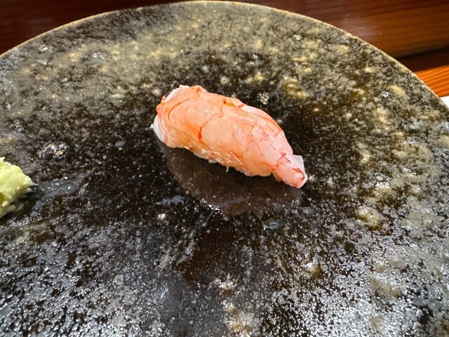 前回も感動した錦江湾の深海で取れる貴重なナミクダヒゲエビをニ貫づけで再会でき、その独特の食感と甘みには改めて心を奪われました。ここでもシャリが海老の甘みを極限まで引き立てています。