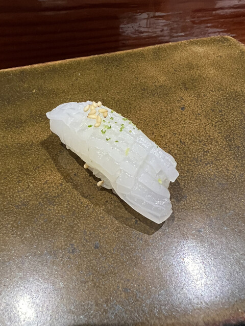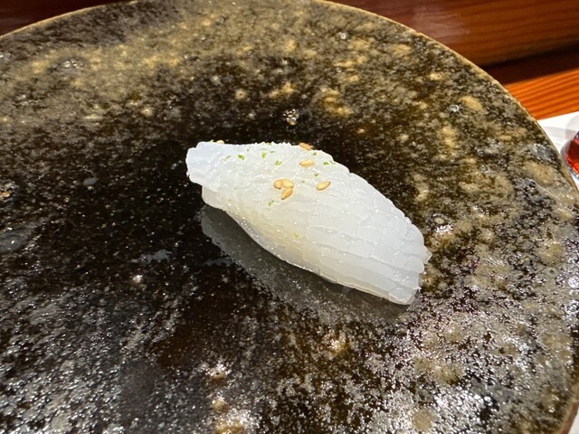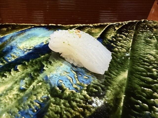 鮨屋はイカでわかるねぇと多くの巨匠達が口を揃えますが、なかでものむらのアオリイカはメルトダウン悶絶もの 目を閉じて香りを堪能して頂きたい一貫
