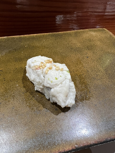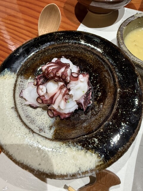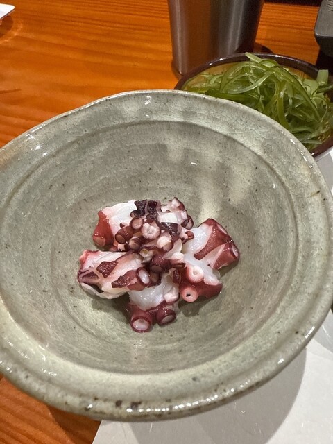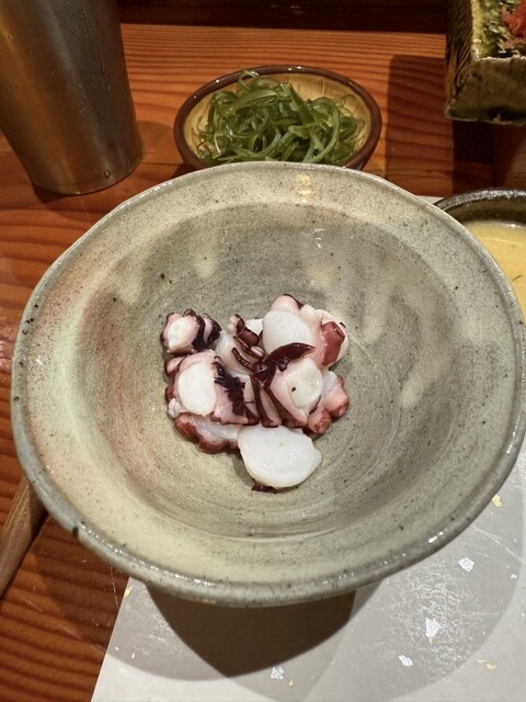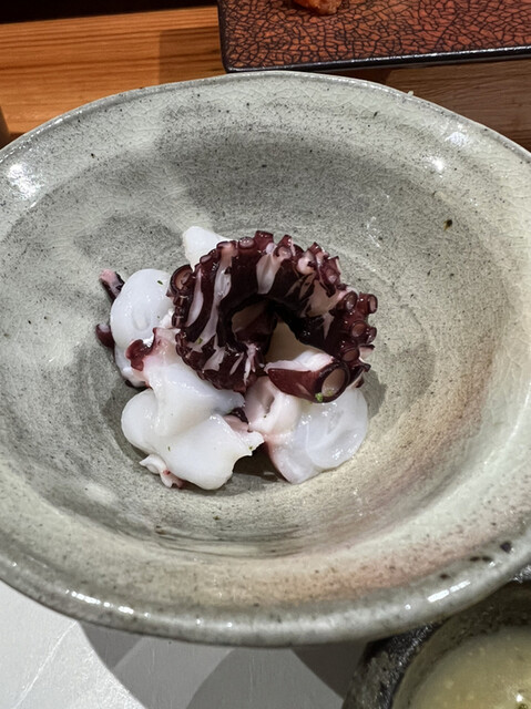 鹿児島マダコ こんなタコがあるんですね いつも味わいと温度に度肝を抜かれます。ごま塩で高貴な味わい、お酒が進みます。