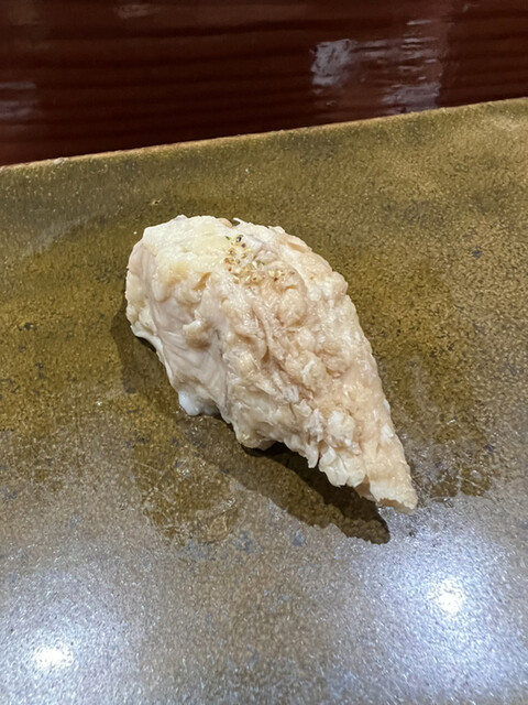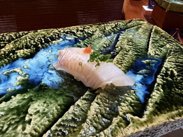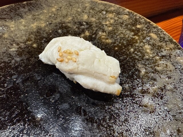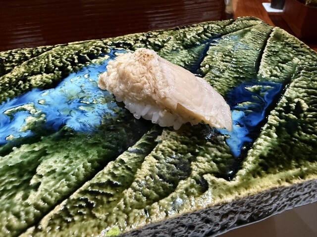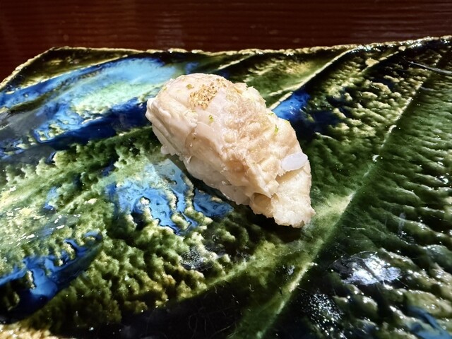 素晴らしいのは、その力強いネタを受け止めるシャリの存在感。絶妙な酢の塩梅とほどけるような温度感が、クエの脂と口の中で渾然一体となり、旨味の爆発的なマリアージュを生み出します。これぞのむらの真骨頂。