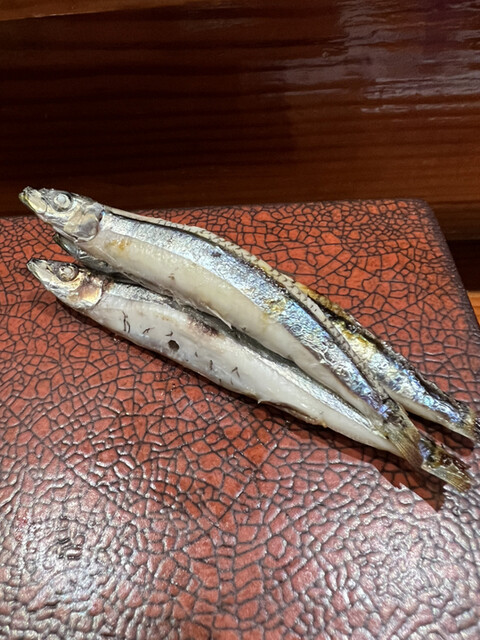 鹿児島産キビナゴの焼き物 oh my god, 素晴らしい下処理と火入れで苦味もほぼ無く、味わい深い。日本酒ススムクンです。