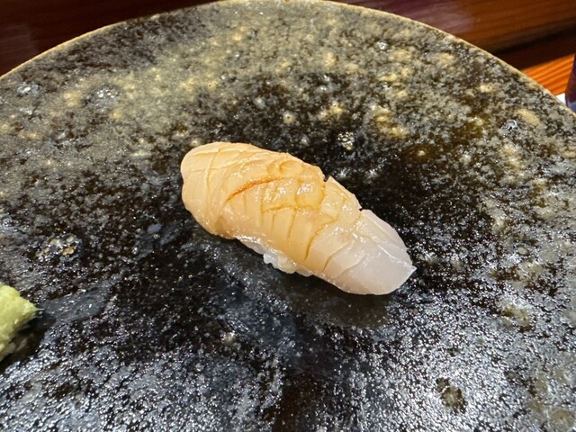 天然真鯛 あまり野村では真鯛お出ししないんだけどねぇ、ただ極端に良いものが入ったらとのことで こちらも食感、香りそして何よりシャリと合う!お鮨ってこう言うことだよね!と五感で感じます。