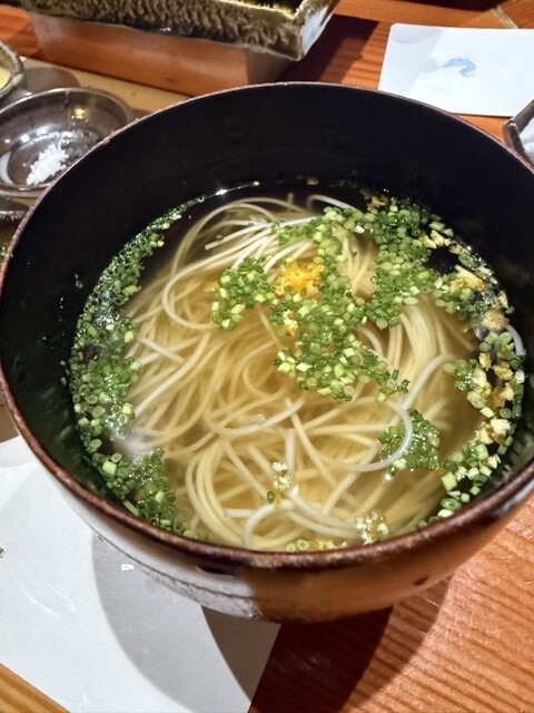 シャリと合わせた白子リゾットは濃厚かつクリーミーで、酒飲みにはたまらない一品。続く車海老、そして絶妙な食感と舌触りの厚岸のカキや、陣川氏の渾身こもったそうめんは鯖節のお汁で非常に味わい深く、酒の肴としても成立する完成度です。そんな変化球も織り交ぜつつ、杯を重ねるごとに劇場は終盤へ。