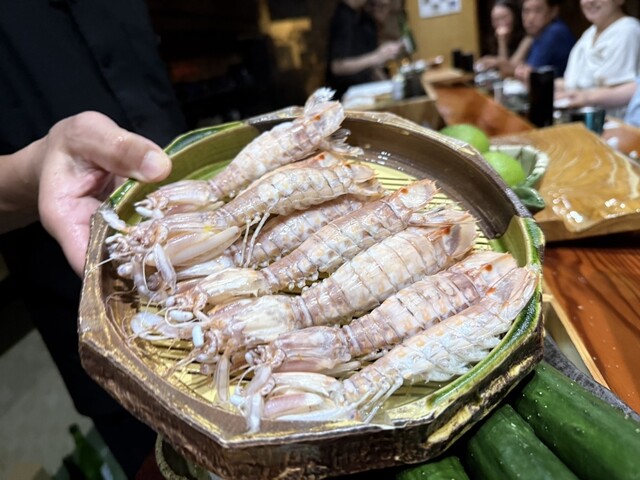 透き通った蝦蛄 こんなに透き通った蝦蛄はやはりのむらさんならでは 香りと旨味も素晴らしく なみくだ、クルマ、蝦蛄と無双状態