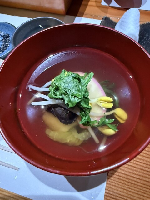 特筆すべきは、1月という季節を感じさせるお雑煮。野村さんの手にかかると、これもまた一品料理としての完成度が凄まじく、出汁の余韻だけで酒が飲めるほど。