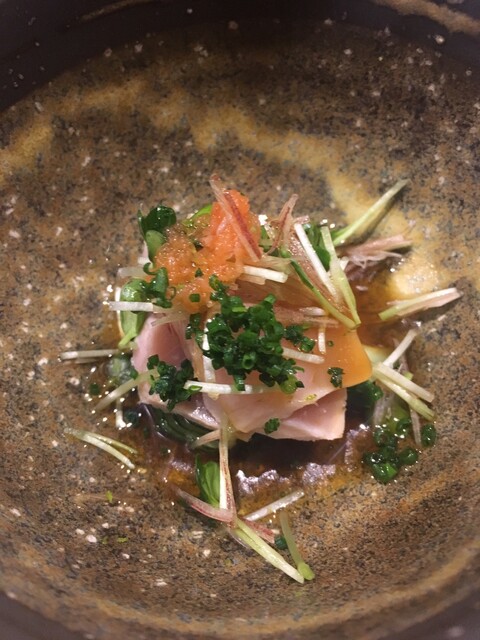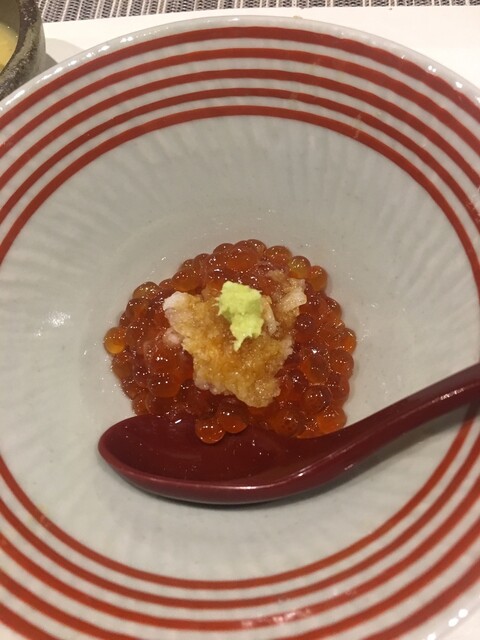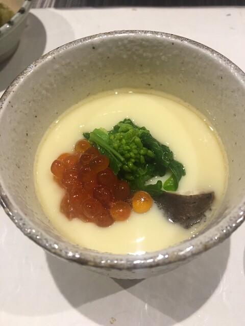 ●茶碗蒸し:イクラ、菜の花、安納芋、アオリイカ、平目などの具沢山