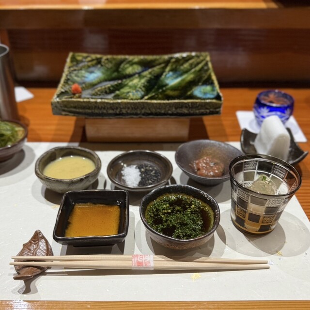 その日の仕入れで変わるコースは、どの一貫も手間と工夫を感じる。近海で獲れた魚を中心に、シャリとの相性を考えて塩や梅を軽く効かせたり、薬味や漬けの加減が絶妙なんよ。正直、ただ高級な魚を握る!!とこだけじゃなくて、味の...