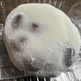...と、ありました。やや季節外れながら栗大福。 福岡で見た如水庵と同じで皮に栗がちりばめられた外見です。 微妙に粟大福(クリじゃなくてアワね)な外見...