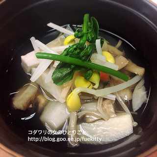...季節の野菜サラダ 県産こしひかり 味噌汁 ちりめんじゃこ きりあい 贅沢茶碗蒸し お月見豆腐 玉子焼き 佐渡産桜鱒味噌幽庵焼き 昆布巻き のっぺ 満足&満腹ごちそうさまでした...