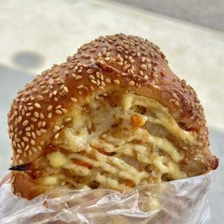 ...■綺麗な 断面 ■有るの 全部 買ったららしい ■メロンフラワー ■タマゴドーナツ ■ペッパーポークをサンドしてカスクルートにしても美味しかったぁ〜(๑˃̵ᴗ˂̵)...サンドウィッチを、比較的手頃な価格で提供。 営業時間は9時半から21時。 タマゴドーナツは...