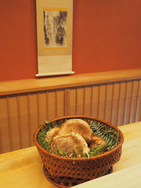 カウンターの真ん中でとても立派な丹波産の松茸が出向けてくれます。