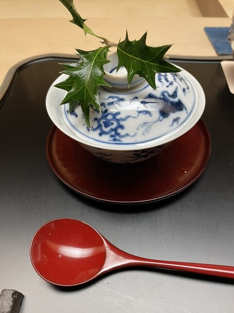 厳冬の御献立には伊勢海老・河豚・蟹をつかって白味噌仕立の御雑煮の出汁は他では食べられない