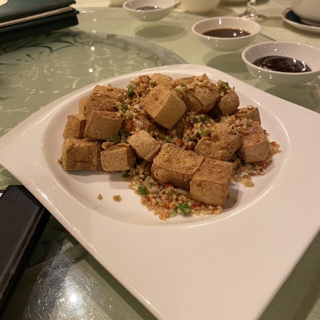 (オマケ。ここからは別の日のオマカセコース)豆腐を素揚げにしてニンニクと胡椒で食わせる。すわ臭豆腐かとビビったが、フツーの豆腐で善き哉。
