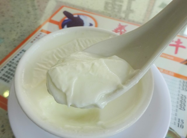 温かい牛乳に生姜汁を加えて固めた、独特な品です。