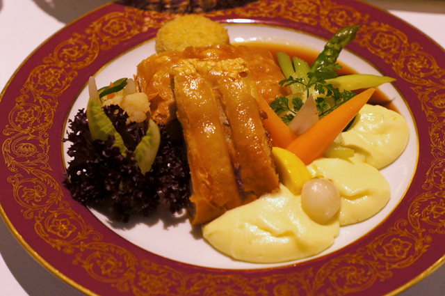 ソースはテーブルでかけてくれます。一応、前菜リストの中から選んだんですけど、ボリューム的にも内容的にもメインっしょ。しかし、パイのパリッと感、肉のジューシーさといい、そこらのフレンチより旨い。ポルト酒のソースといい、オータニの『サクラ』を思い出す極上さ。