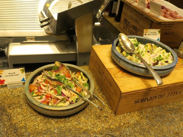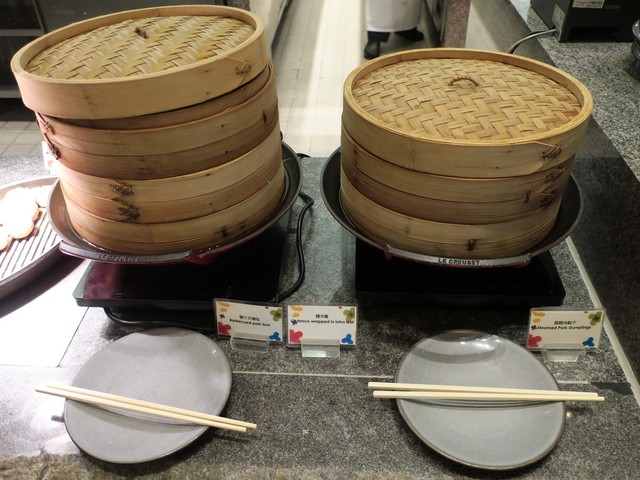 ベーコンやマッシュルームポテトなどにギョーザや焼売などの点心。