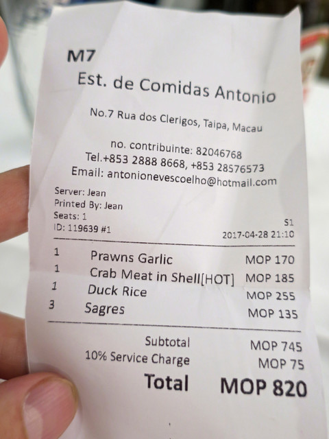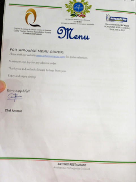 マカオでのお気に入りレストラン「António」さん。
