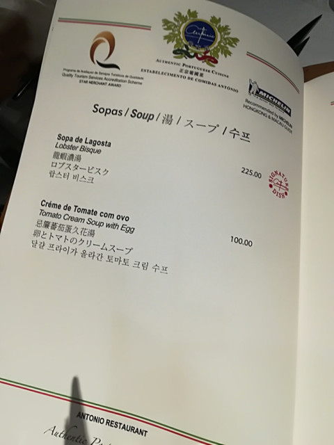 ミシュラン~~~??? ポルトガル料理のアントニオ(安東尼奥)|まいまい♪のブログ