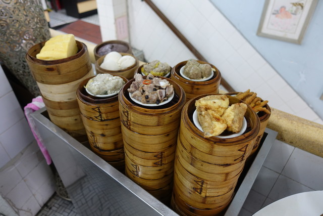 ワゴンに乗った飲茶から蒸篭を選んで注文するワゴン式タイプのお店。