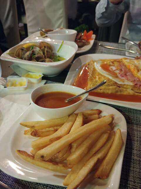 聖ポール天主堂跡(大三巴牌坊)とセナド広場を観た後にトリップアドバイザーで人気ナンバーワンのお店でランチです。せっかくマカオに来たんだからポルトガル料理でも食べなくっちゃいけないという話です。ちなみにここの店員さん、日本語がとても上手でした。何か国語か喋れるようだ。