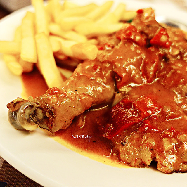 ・マカオの夕飯は船屋葡國餐廳でアフリカンチキンとかリゾットをいただきました。