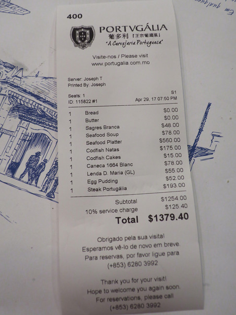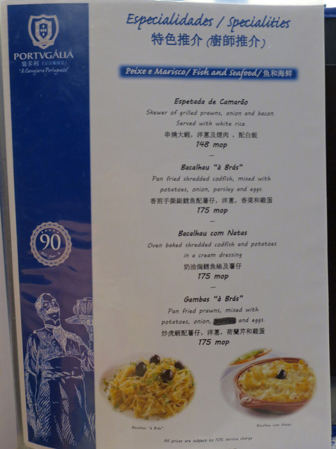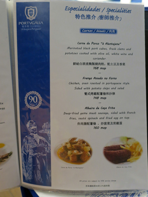 * Bife "a Portugalia" 193MOP(約2,895円)