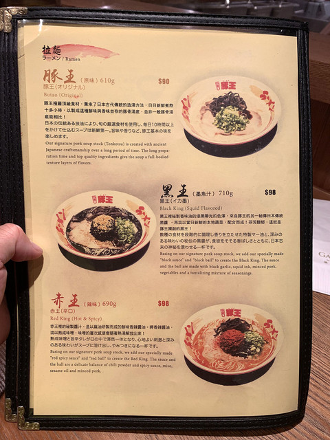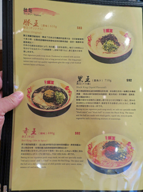 豚王(オリジナル)・黒王(イカ墨)・赤王(辛口)・翠王(フージョン)