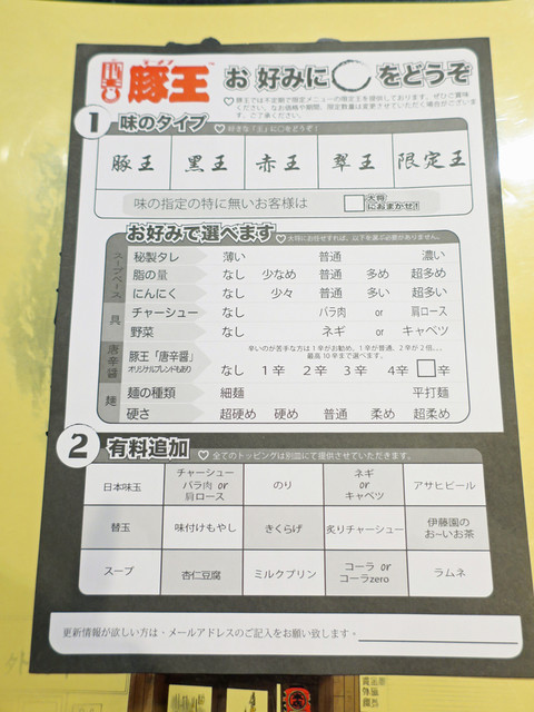 麺の硬さ、など神に記入して事細かに指定できるシステム。